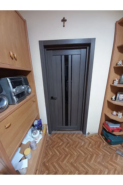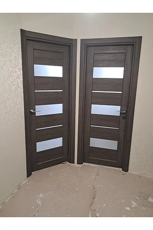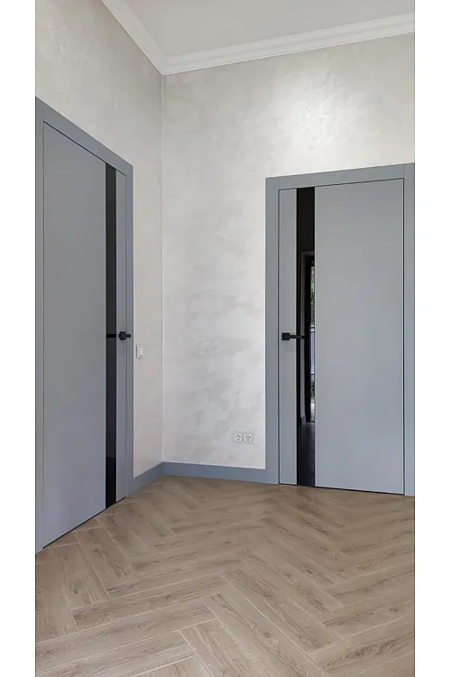 Двери Стронг Айрон графит G1298 песок/белый атлас Vinorit "Qdoors"