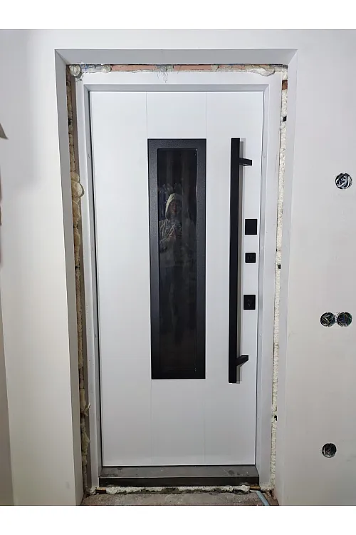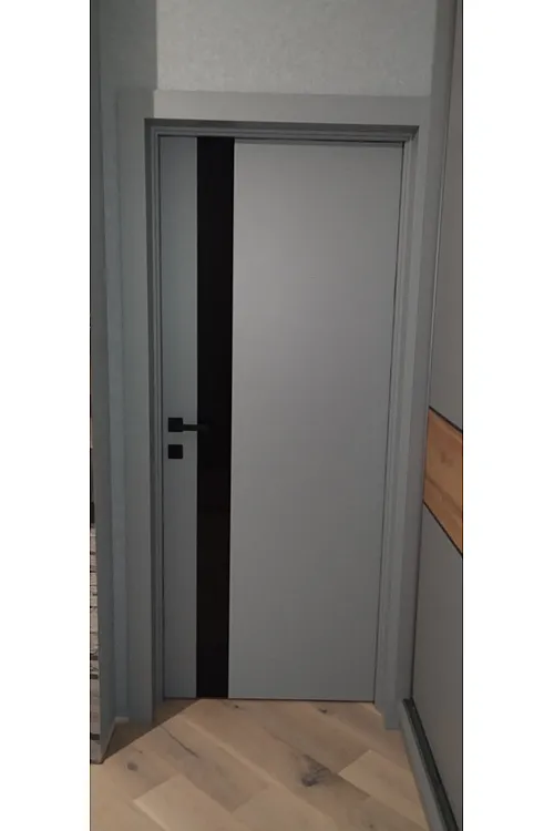 Двери Plato Line PTL-03 белый матовый (декор с алюминия черного цвета) Darumi