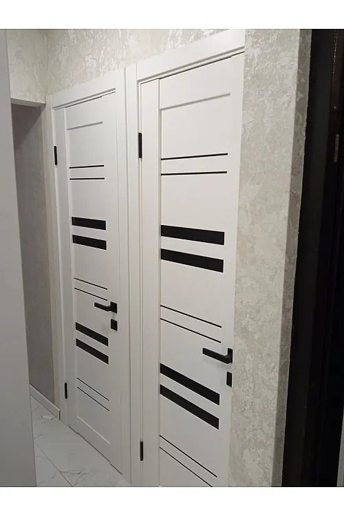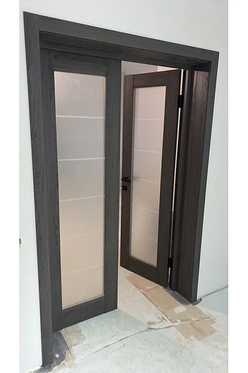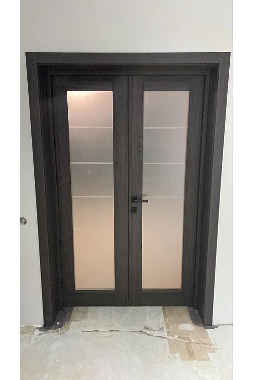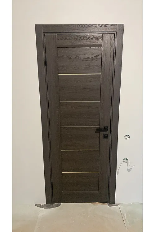 Двери Стрит Бонд графит песок краска/декор темное дерево (профнастил)/гладь Vinorit белый "Qdoors"