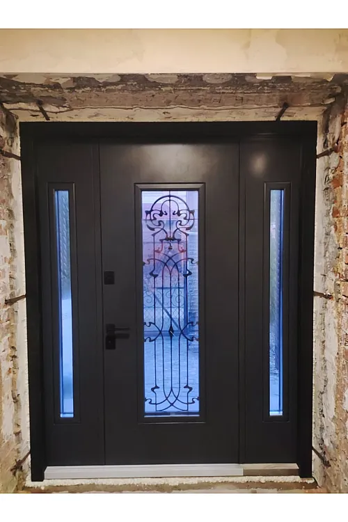 Двери 143 (серая) (стекло+ковка №18) Magda