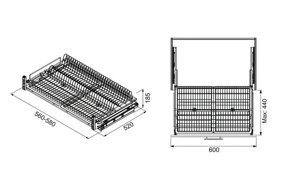 Сушка висувна 600 (560-580x520x185) на тандемах Blum, хром Starax