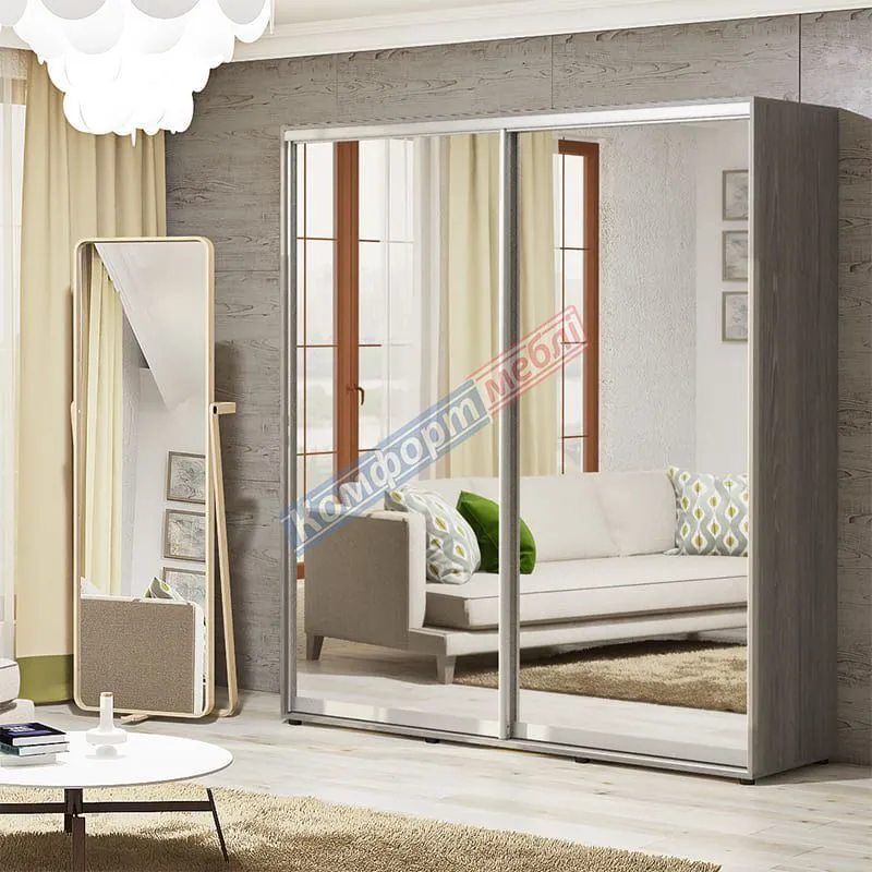 Шкаф-купе 1,6 метра Комфорт "Зеркало" двухдверный дуб трюфель