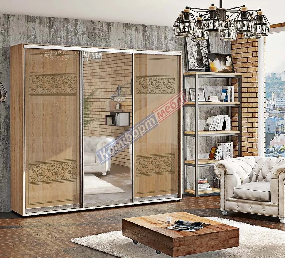 Шкаф-купе 1,8 м Комфорт "Валенсия" глянец трехдверный дуб сонома