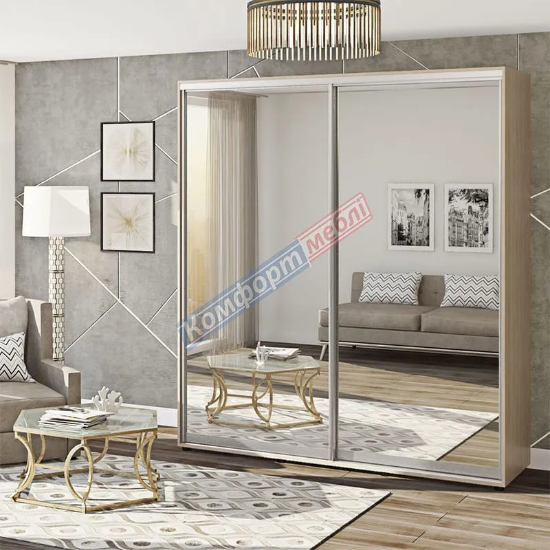 Шкаф купе 130 см Комфорт "Зеркало" 2 дверный дуб сонома