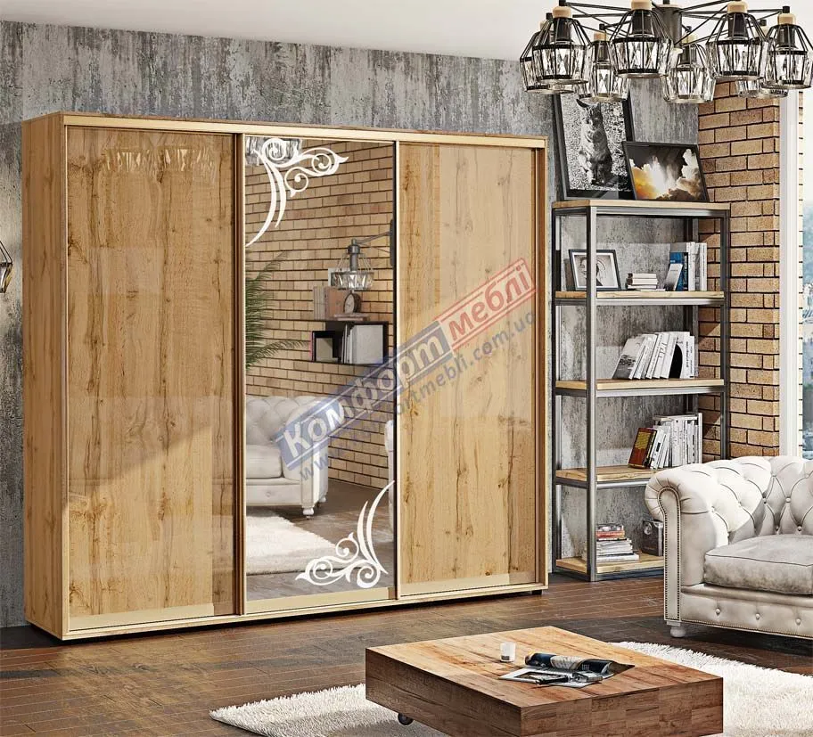 Шкаф купе 2.3 м Комфорт "ДСП" глянец трехдверный дуб золотой