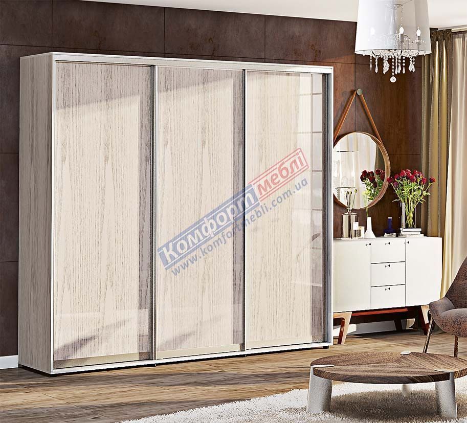 Шкаф-купе 2,6 м Комфорт "ДСП" глянец 3х дверный дуб беленый