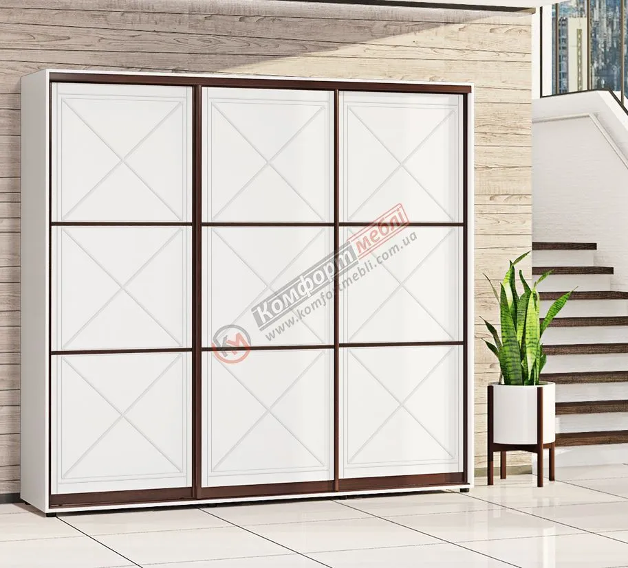 Шкаф-купе 2,6 м Комфорт "Прованс" глянец 3х дверный белого цвета