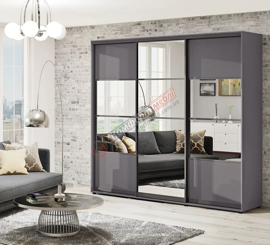 Шкаф-купе 2,7 м Комфорт "Модель 8" 3 дверный графит