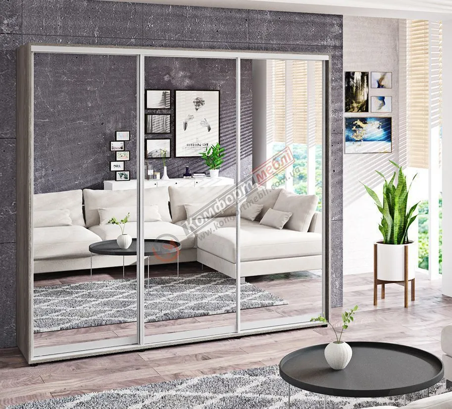 Шкаф купе 250 см Комфорт "Зеркало" трехдверный дуб трюфель