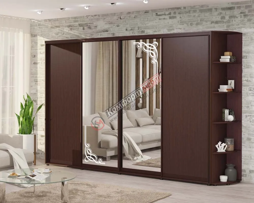 Шкаф купе 280 см "ДСП" с зеркалом четырехдверный дуб венге