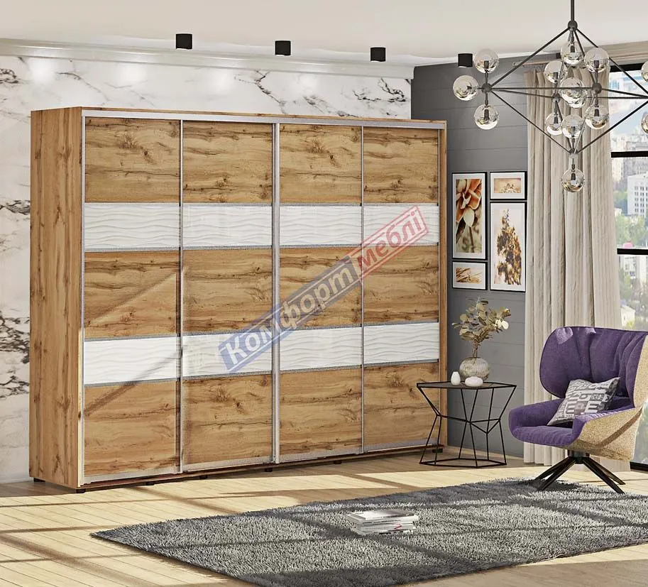 Шкаф купе 280 см Комфорт "Модель 3" четырехдверный дуб золотой