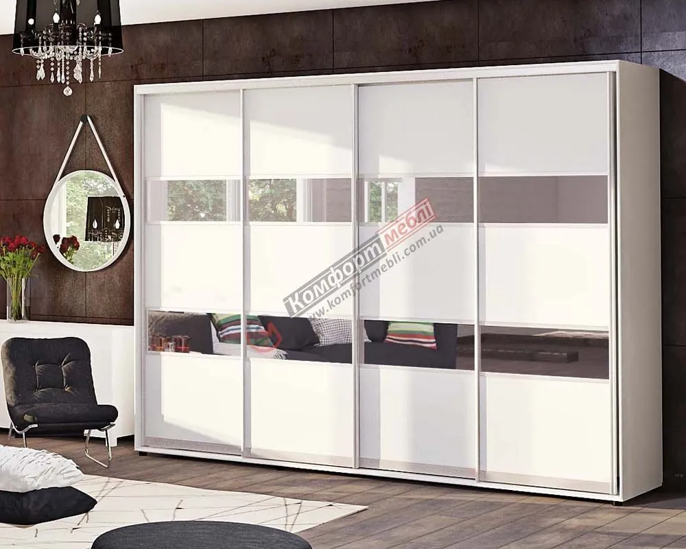 Шкаф-купе 3000 мм Комфорт "Модель 3" четырехдверный белого цвета