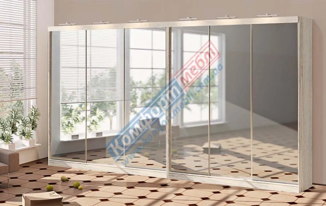 Шкаф-купе 4,4 м Комфорт "Зеркало" 6 дверный дуб беленый