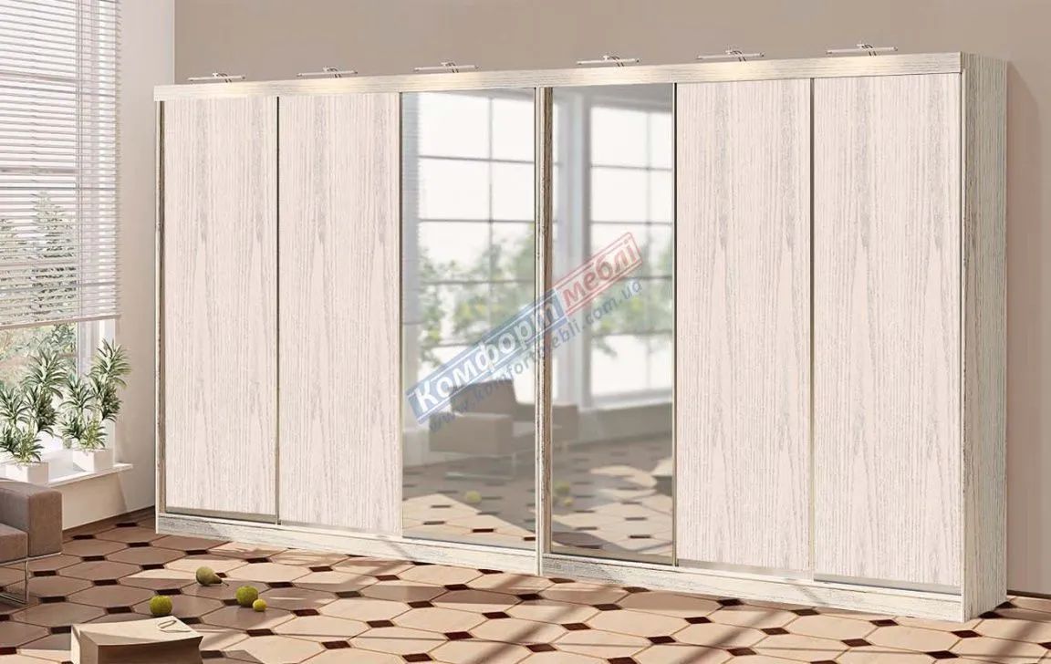Шкаф-купе 5,2 метра "ДСП" шестидверный беленый дуб