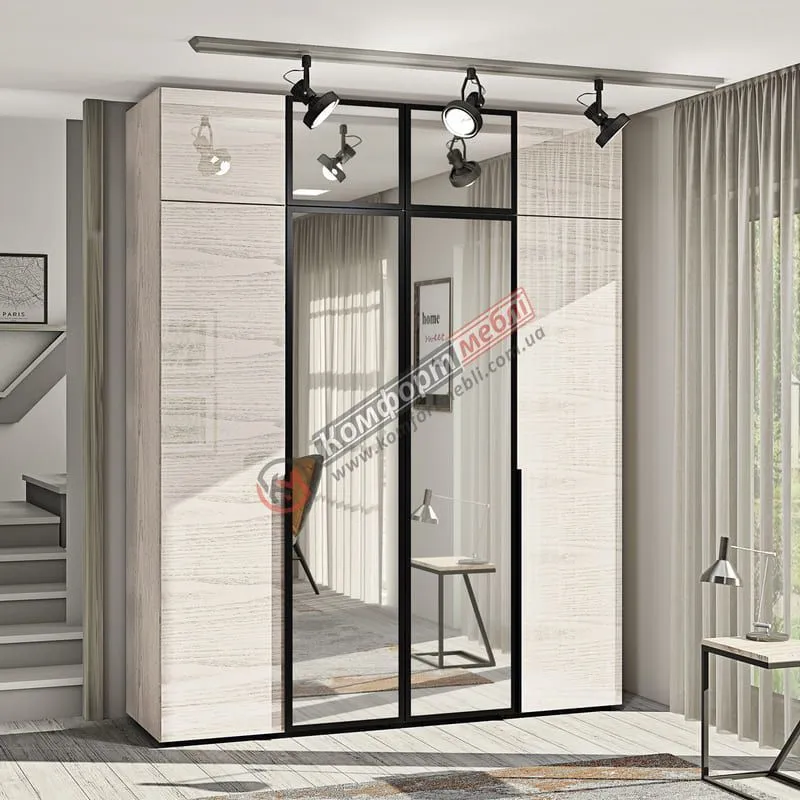 Шкаф с зеркалом Комфорт Флекс 160 см ДСП фасад Дуб беленый четырехдверный