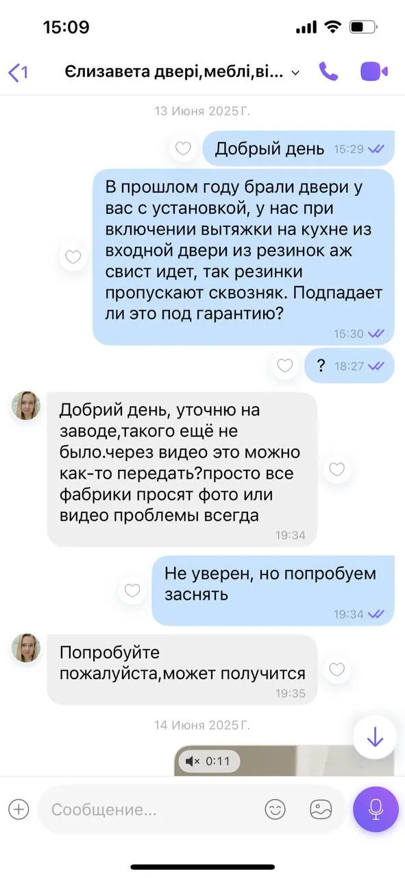 Замовляла двері онлайн.Менеджер Дарина-це чудо.Підібрала двері,співпав колір,фурнітура.Двері чудові,сервіс на вищому рівні.Чоловік,що встановлював-йому велика подяка.Все. Супер.