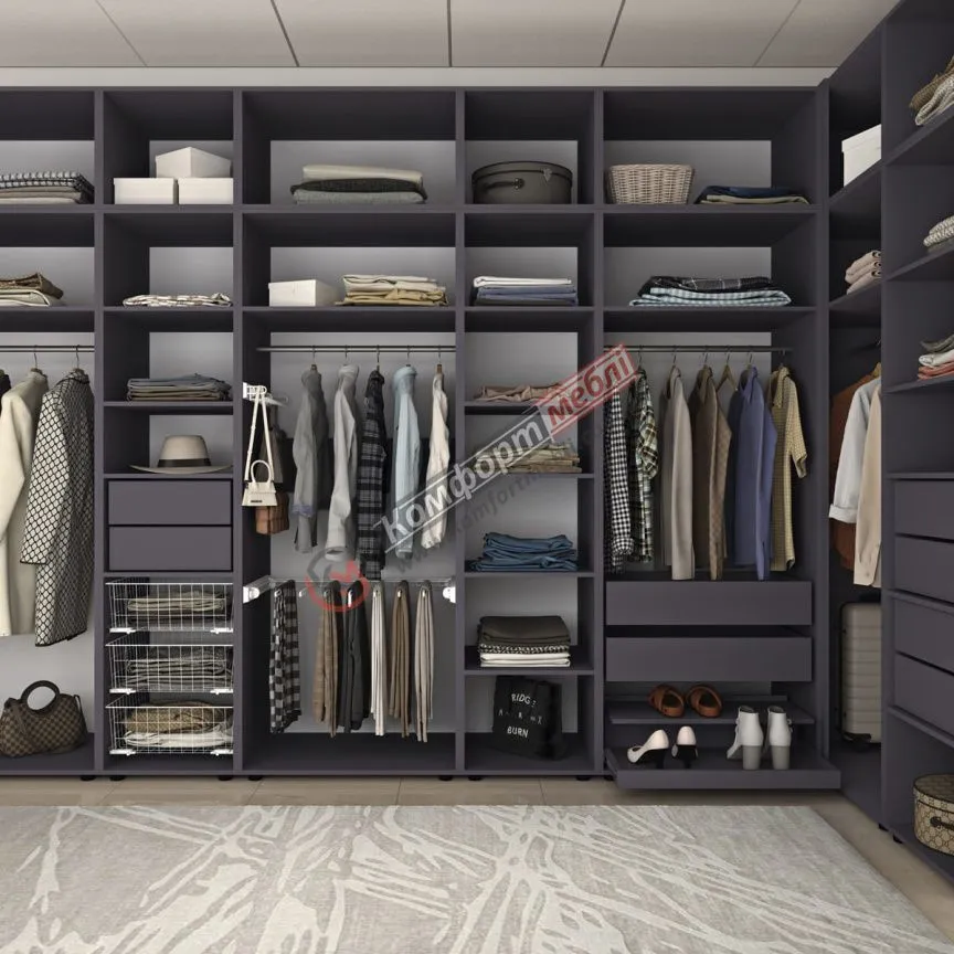 Угловая гардеробная Flex з ДСП Графит для одежды