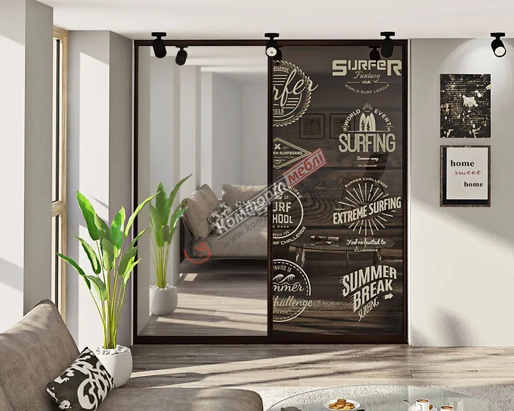 Встроенная раздвижная система 2м двухдверная "Стекло фотопечать" с зеркалом