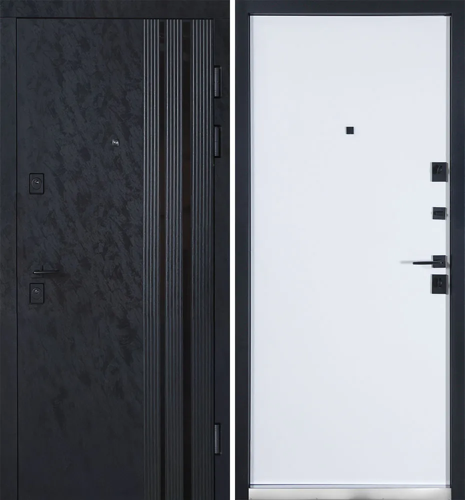 Вхідні Двері Тандем (квадро) 586/гладка Оксид чорний Весь декор/Білий матовий гладкий Булат