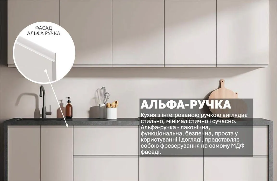 Готова кухня Комфорт Альфа ручка 2.4м фарбований МДФ Білого кольору