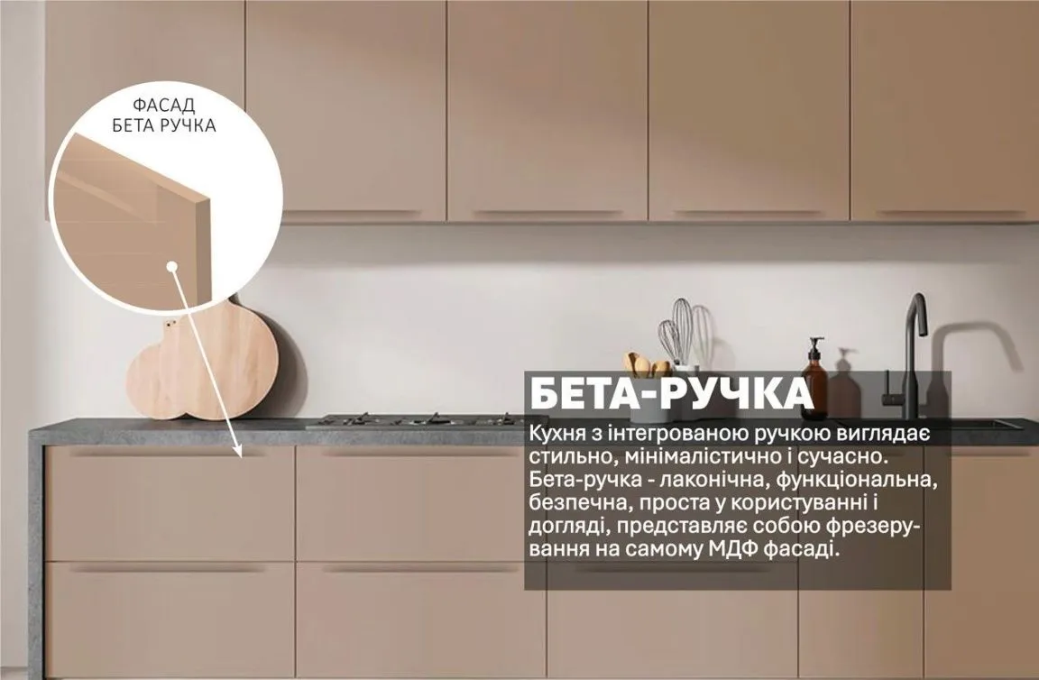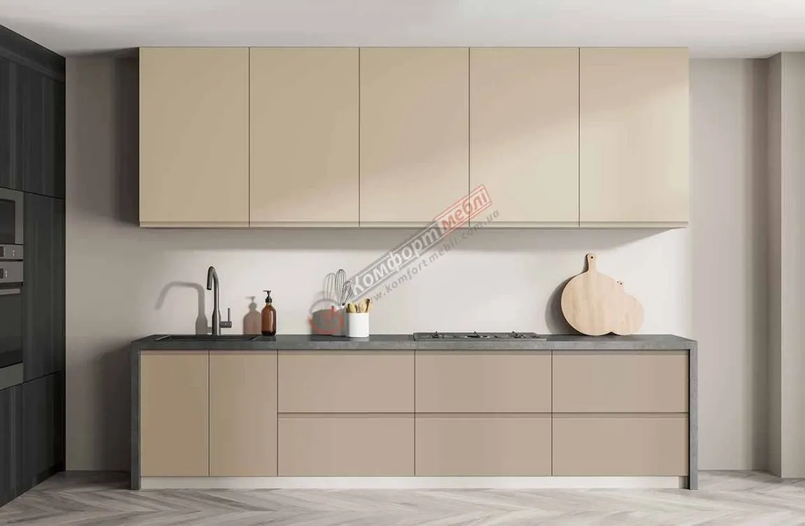 Готова кухня Комфорт Альфа ручка 2,4м фарбований МДФ Капучіно, Крем