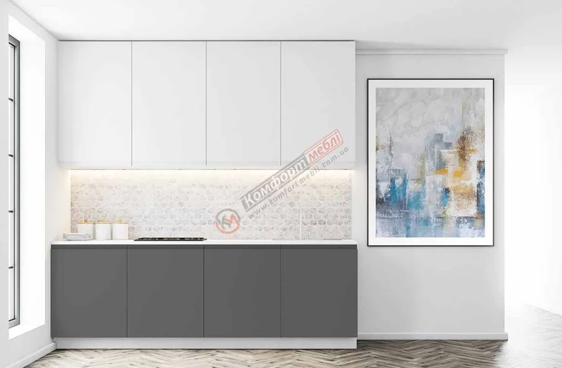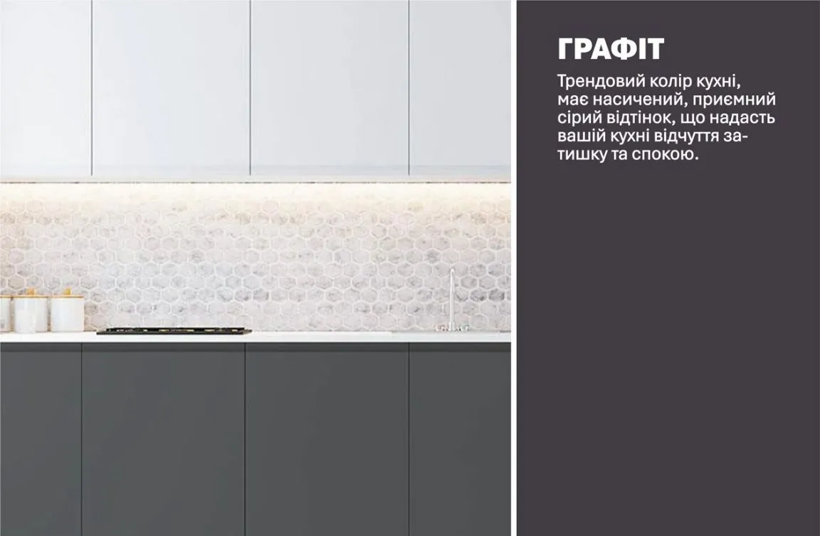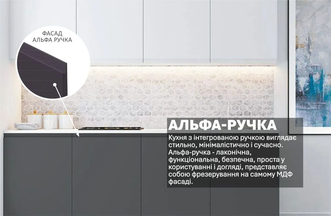 Готова кухня Комфорт Альфа ручка 2м фарбований МДФ Білий, Графіт