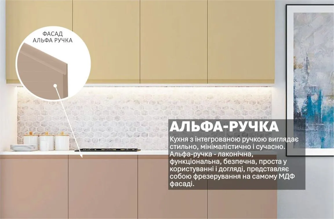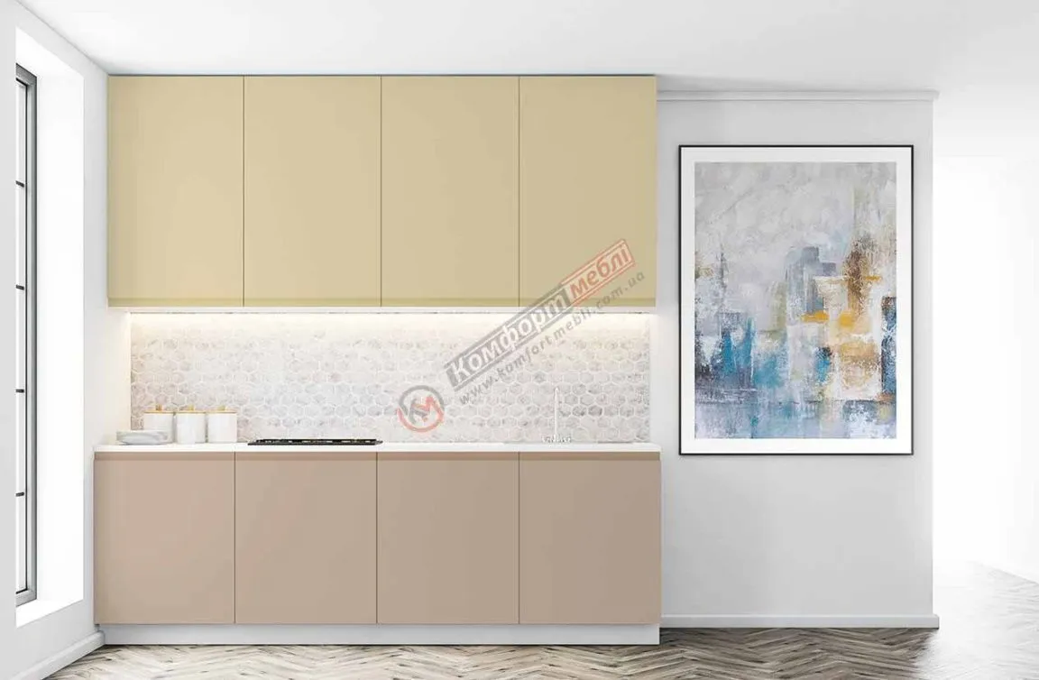 Готова кухня Комфорт Альфа ручка 2м фарбований МДФ Капучіно, Крем