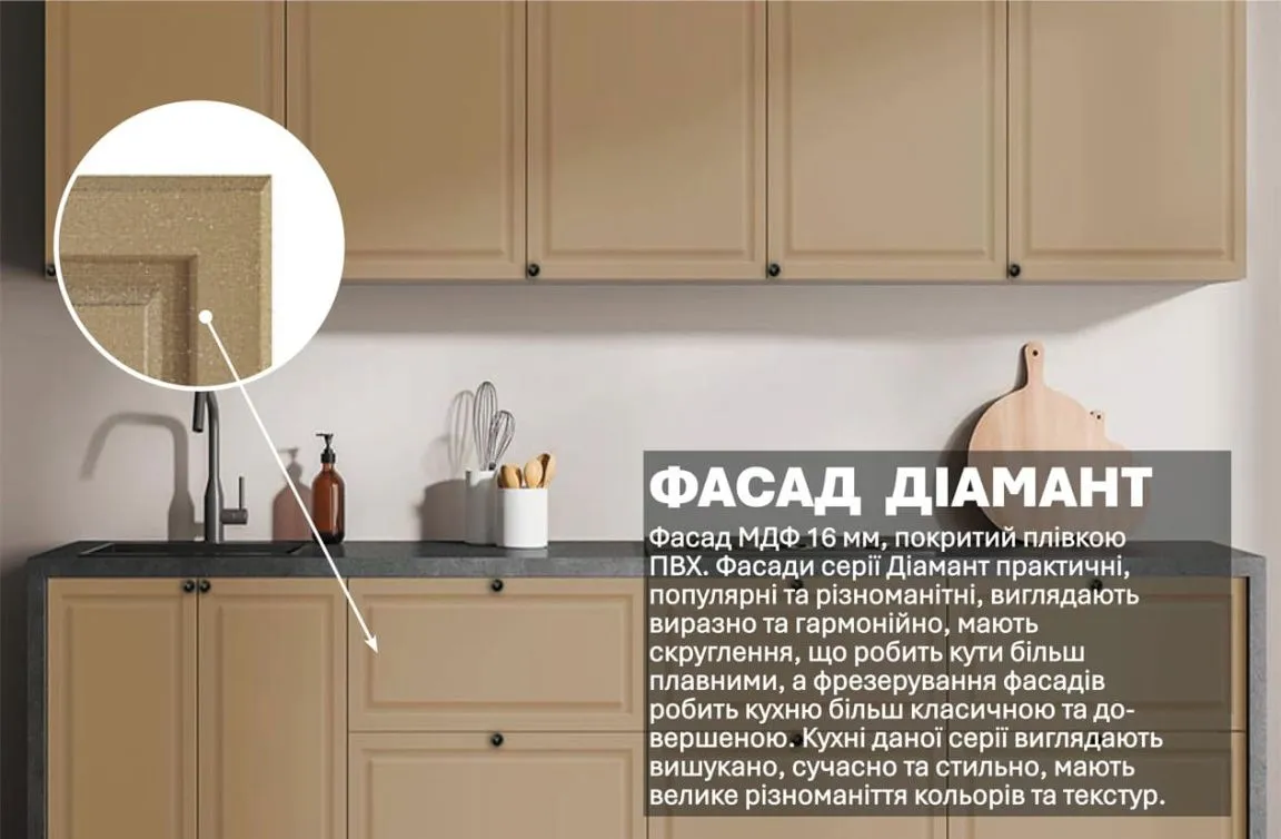 Готова кухня Комфорт Діамант 2.4м Капучіно