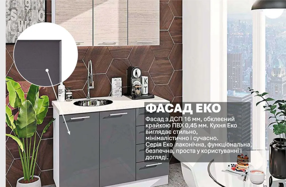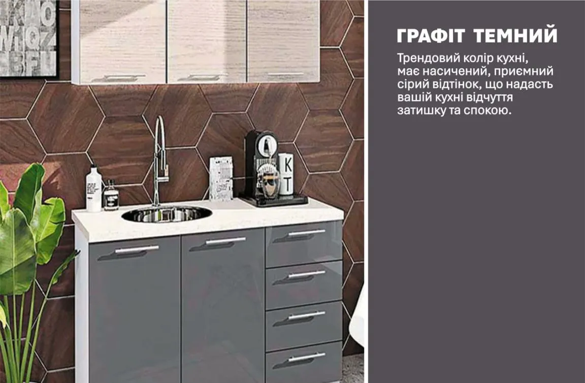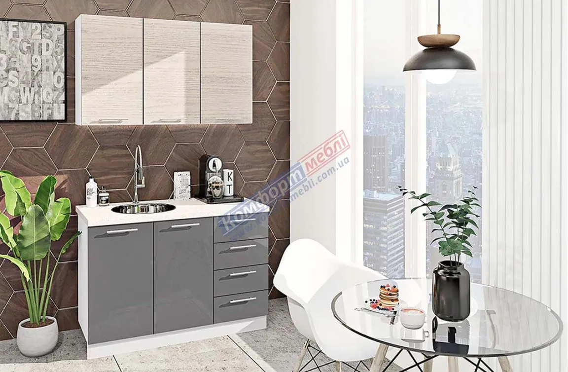 Готова кухня Комфорт Еко 1.2 м пряма Графіт, Дуб вибілений