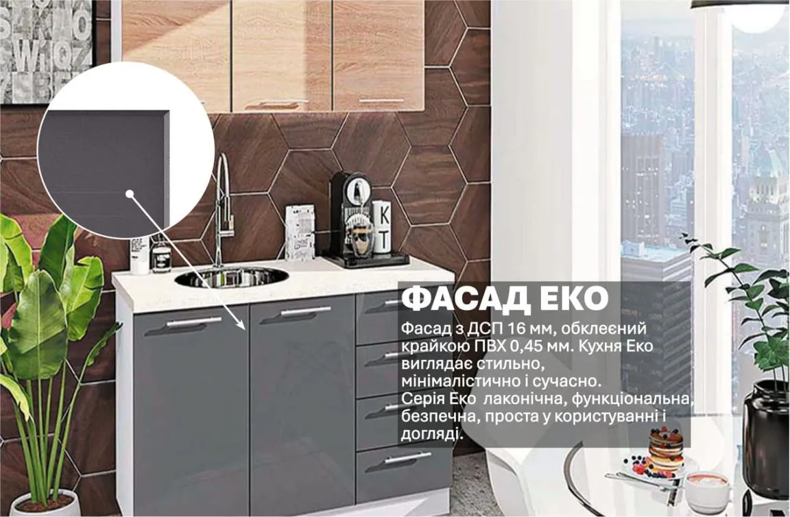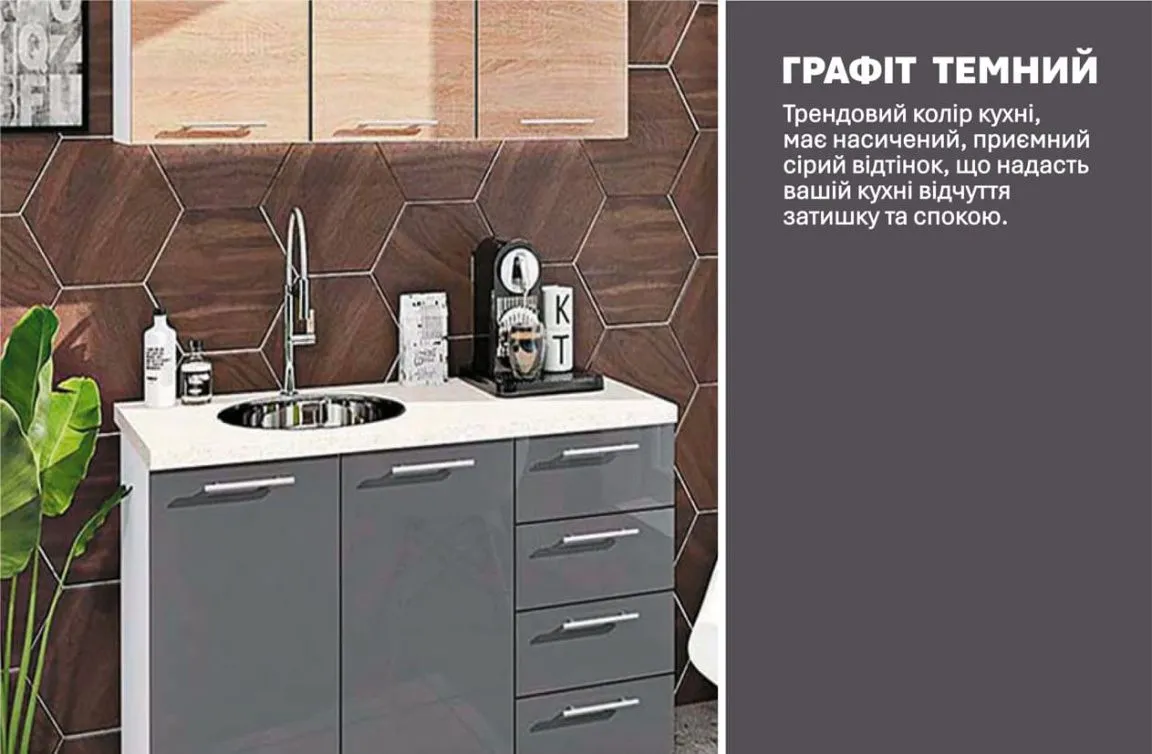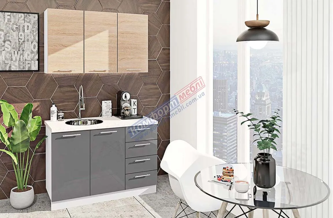 Готова кухня Комфорт Еко 1,2 метра пряма Антрацит, Дуб сонома