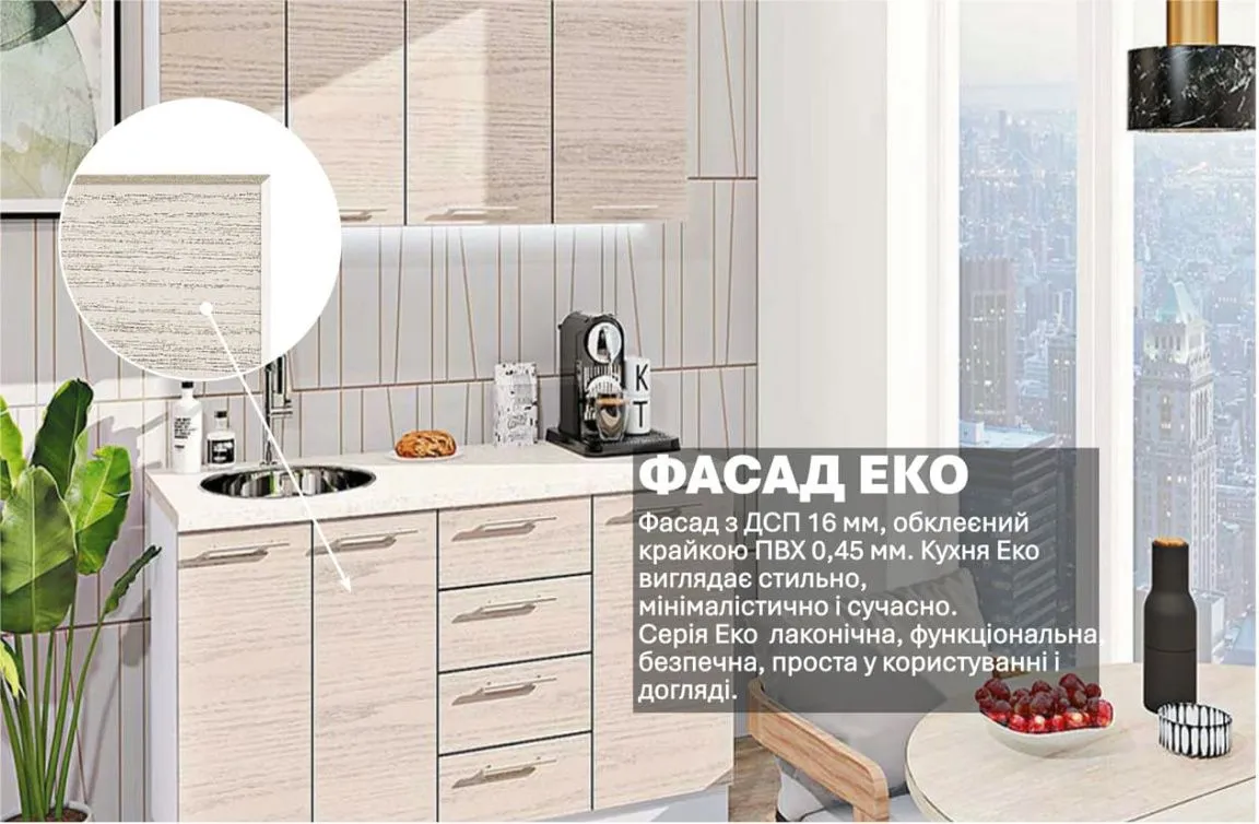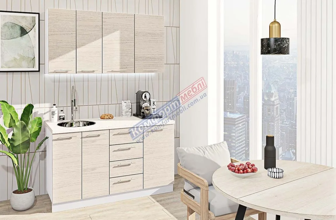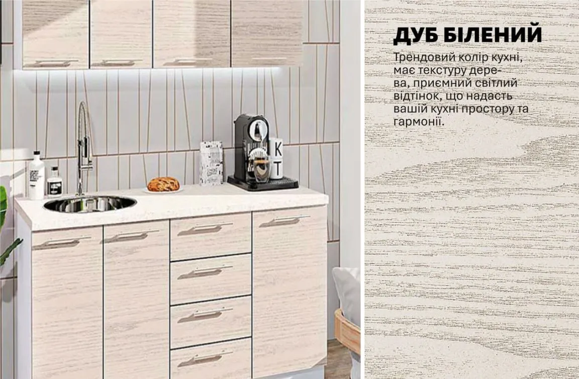 Готова кухня Комфорт Еко 1,4 м пряма Дуб вибілений