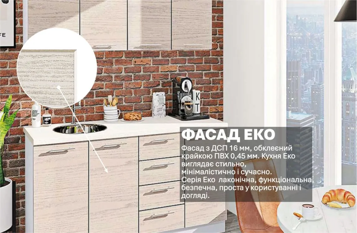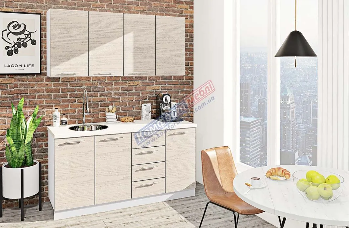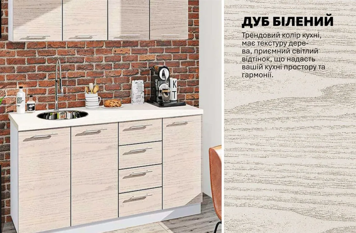 Готова кухня Комфорт Еко 1,6 м пряма Дуб білений