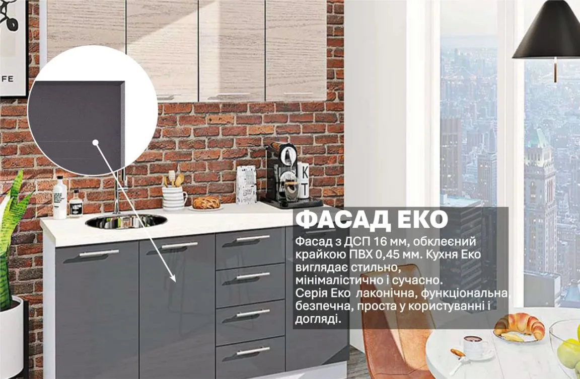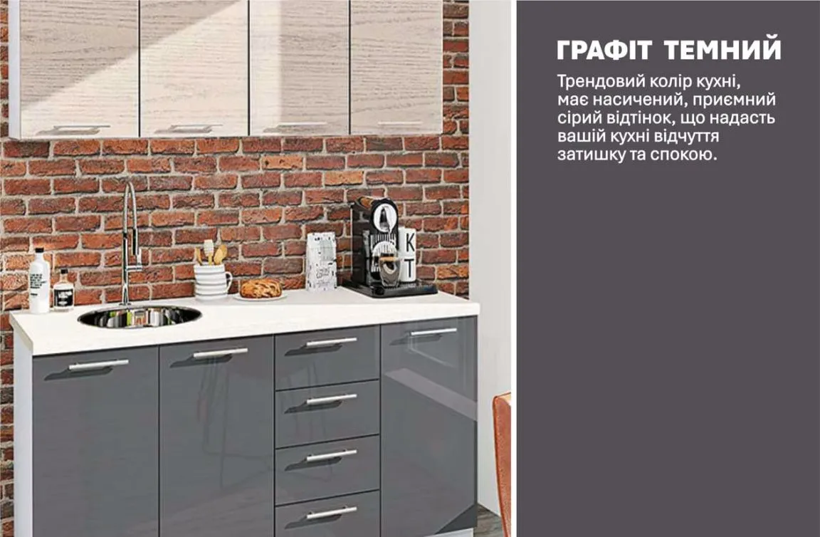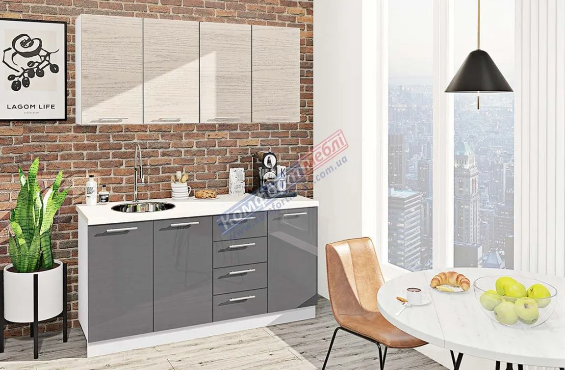 Готова кухня Комфорт Еко 1,6 метра пряма Антрацит, Дуб білений
