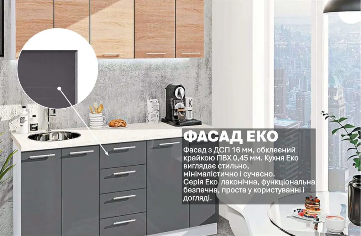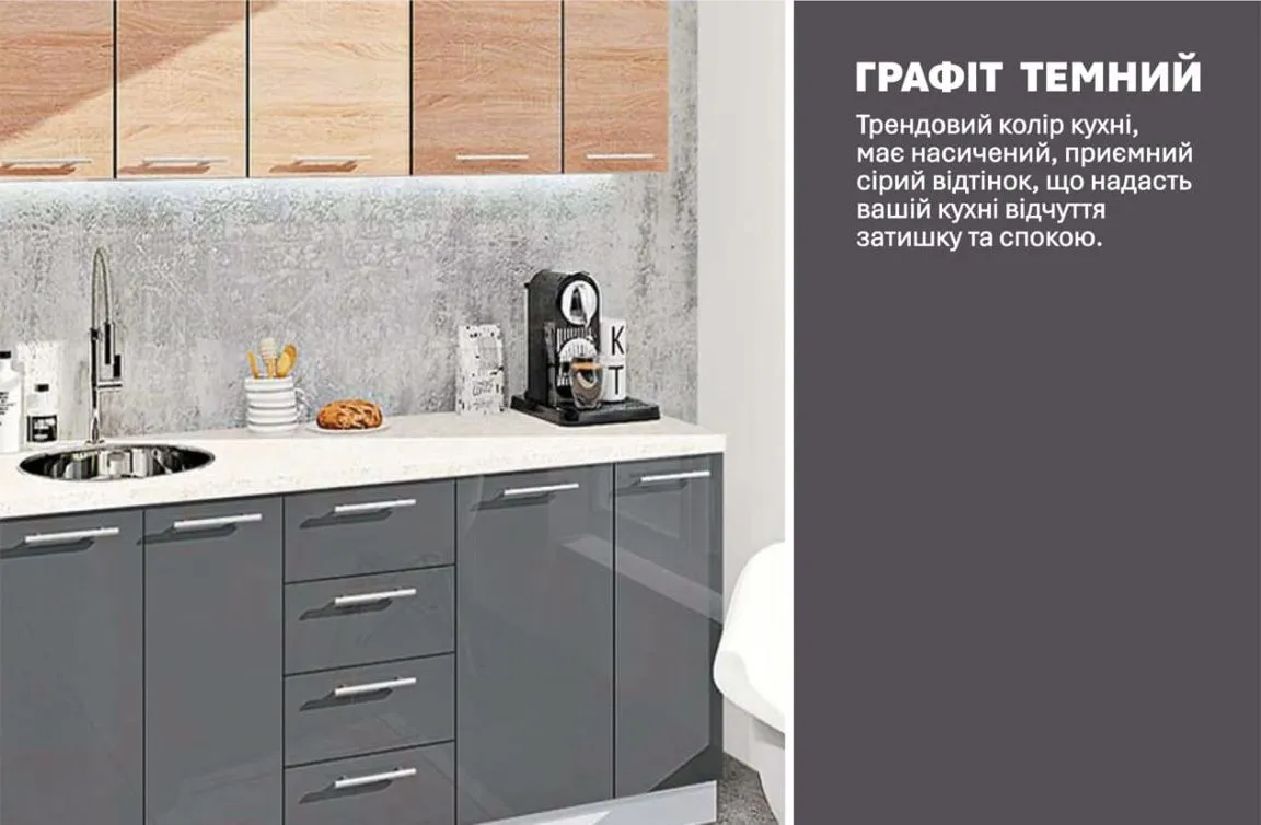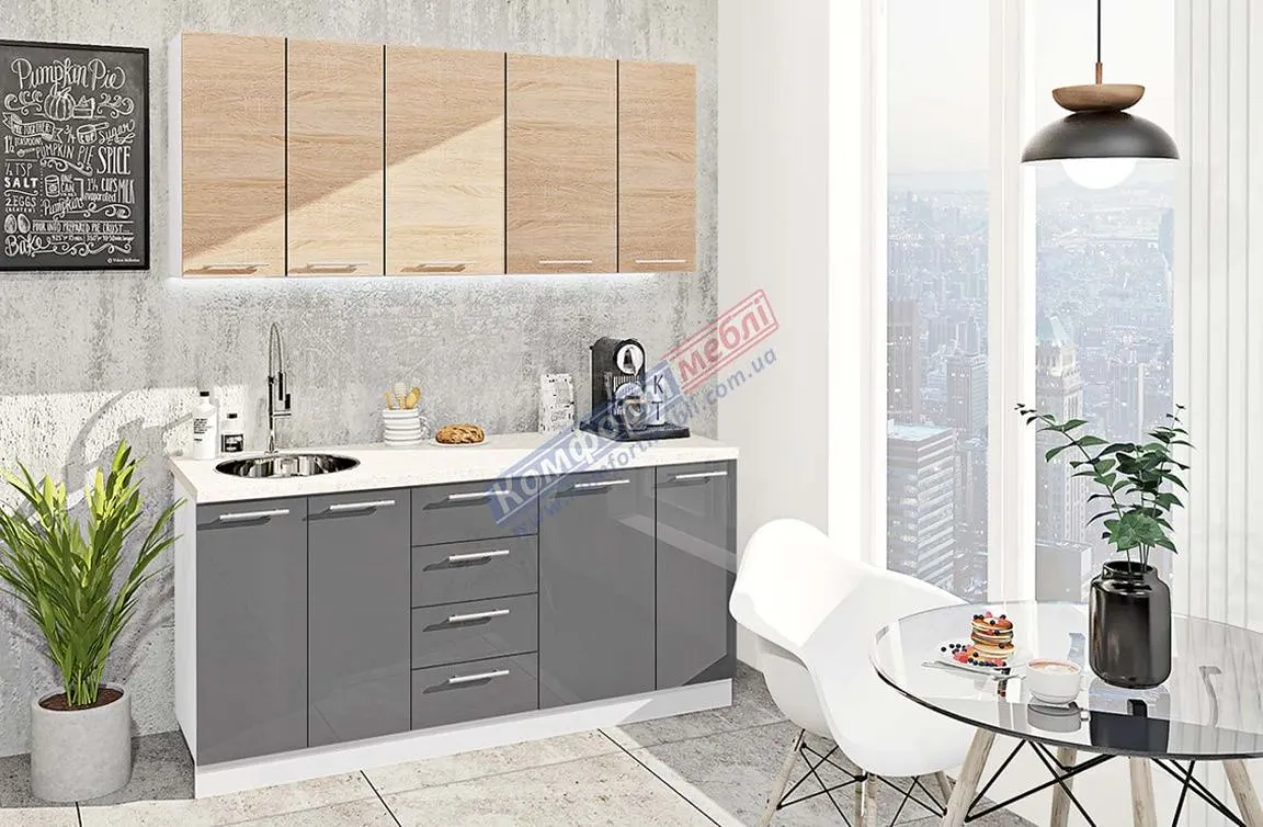 Готова кухня Комфорт Еко 1.7 м пряма Асфальт, Дуб натуральний