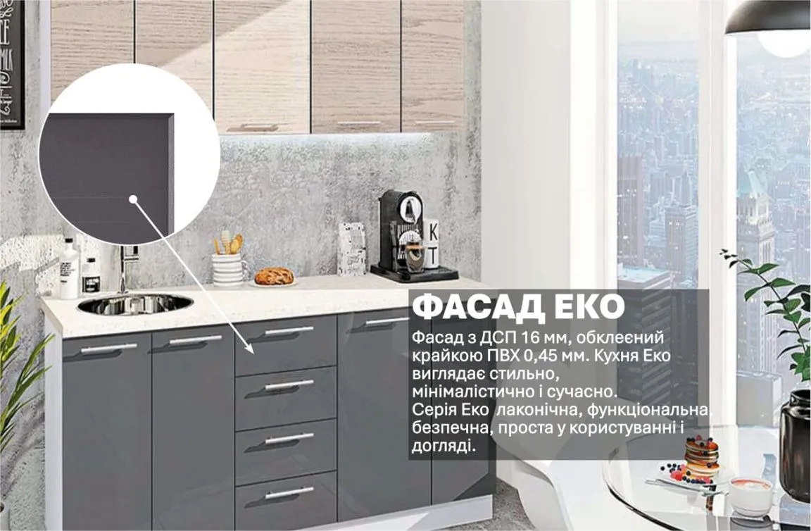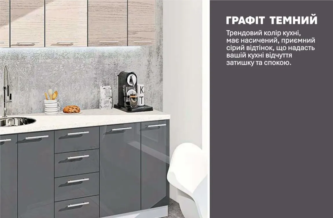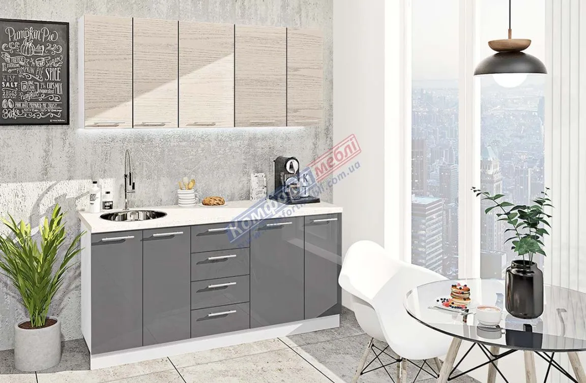 Готова кухня Комфорт Еко 1,7 м пряма Грифель, Дуб вибілений