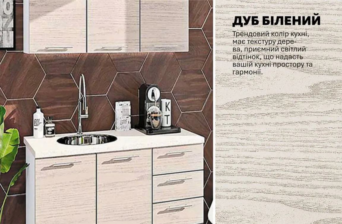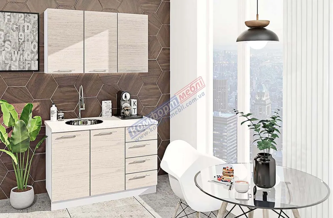 Готова кухня Комфорт Еко 120 см пряма Дуб білений