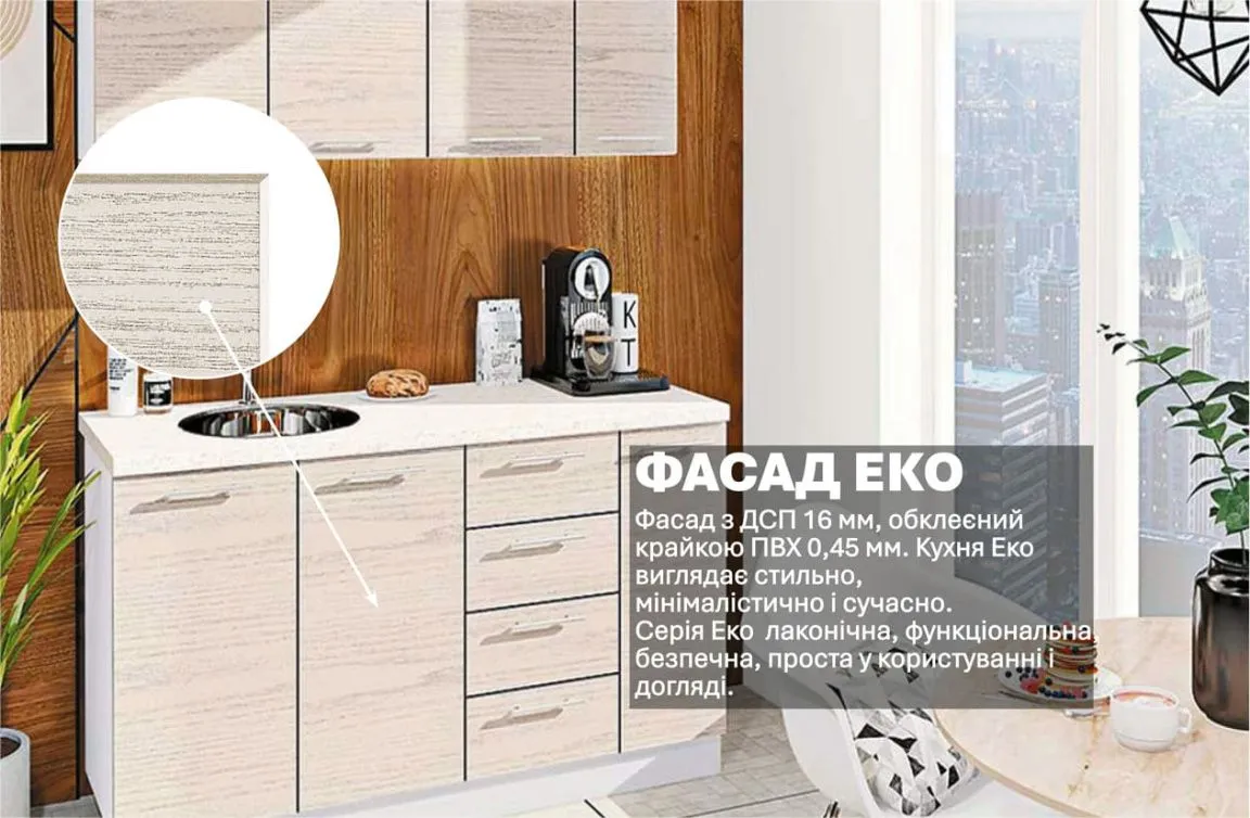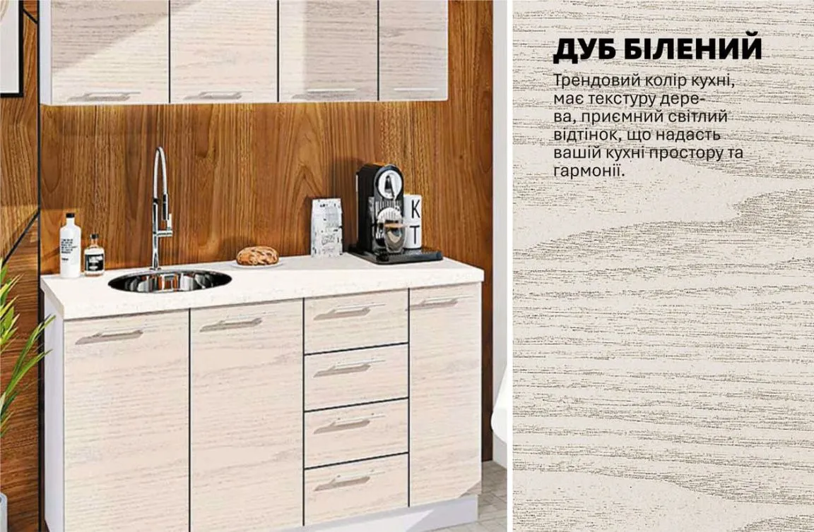 Готова кухня Комфорт Еко 1500 мм пряма Дуб білений