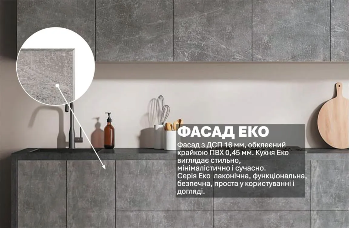 Готова кухня Комфорт Еко 2,4 м пряма Бетон світлий