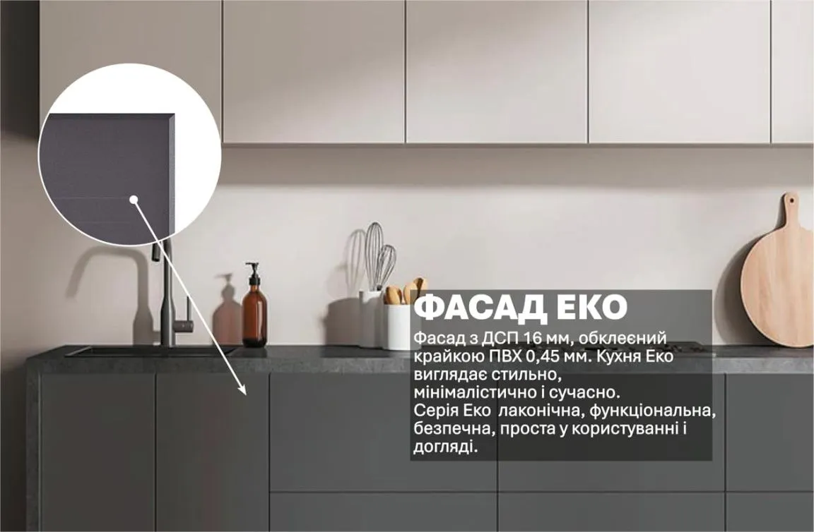 Готова кухня Комфорт Еко 2.4 м пряма Білий, Графіт темний