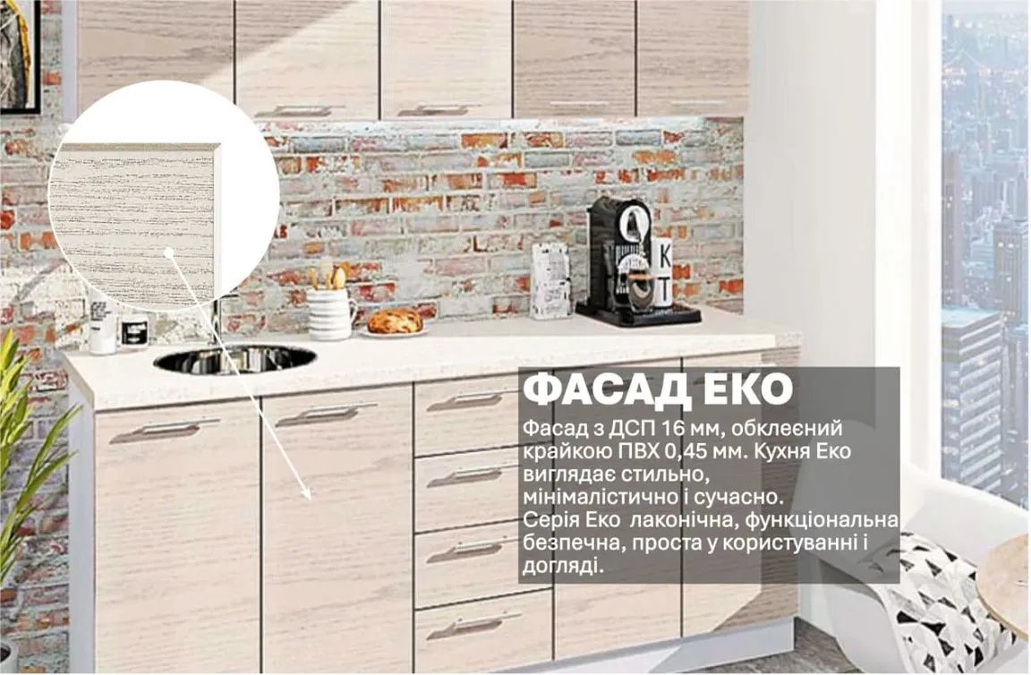 Готова кухня Комфорт Еко 2 м пряма Дуб білений (дуб крафт білий)