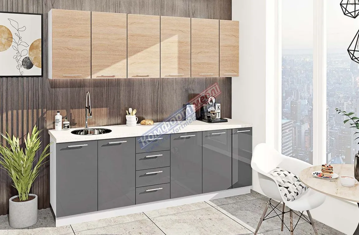 Готова кухня Комфорт Еко 230 см пряма Графіт, Дуб сонома