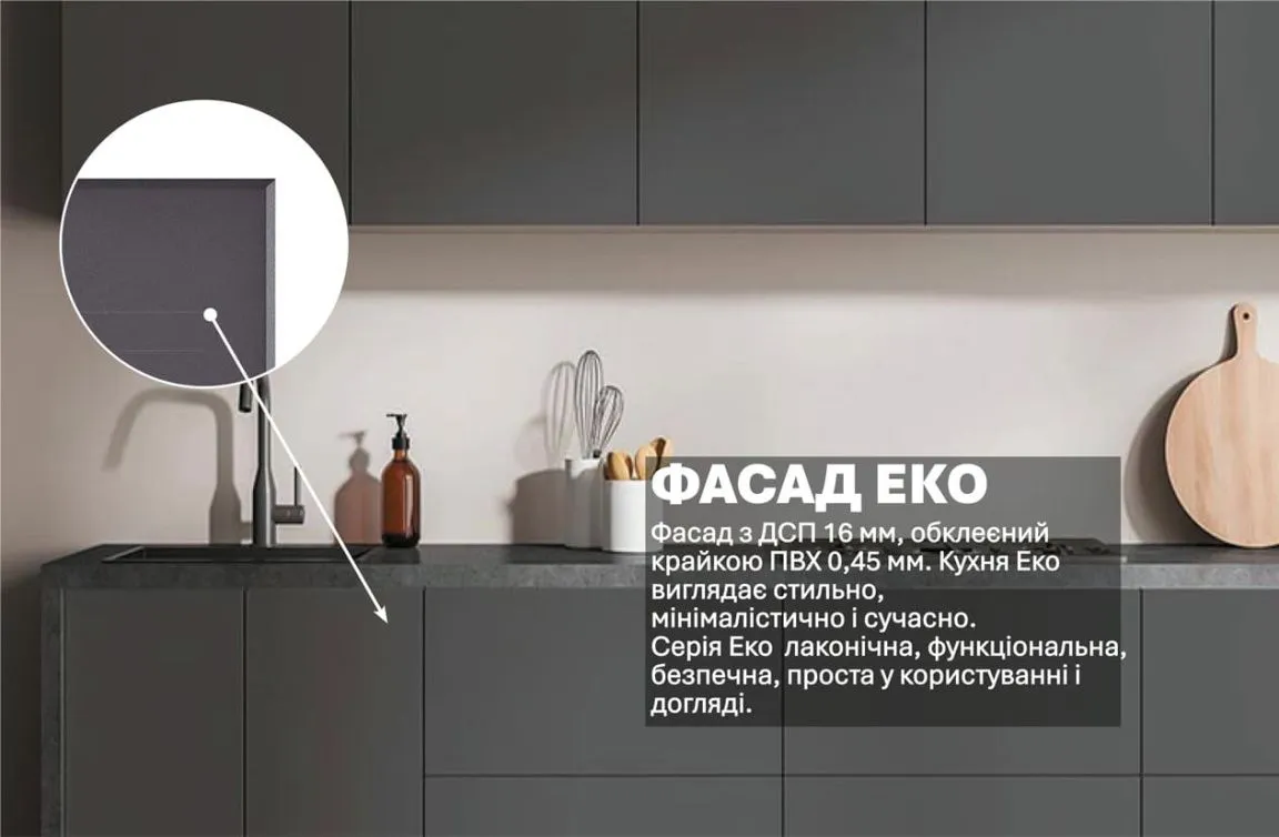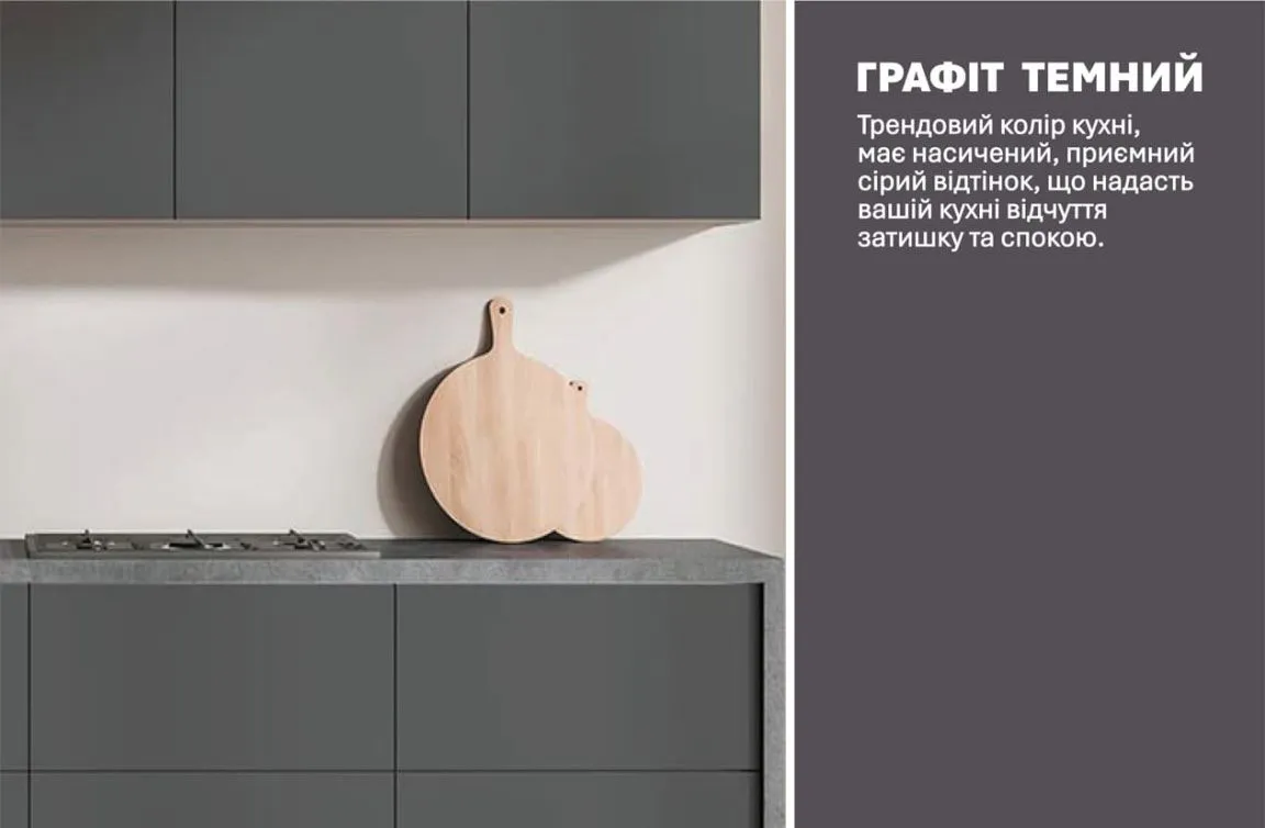Готова кухня Комфорт Еко 240 см пряма Графіт темний (асфальт)