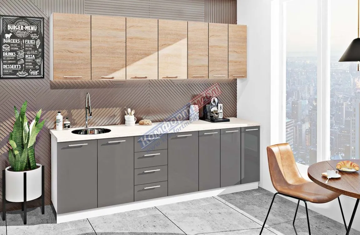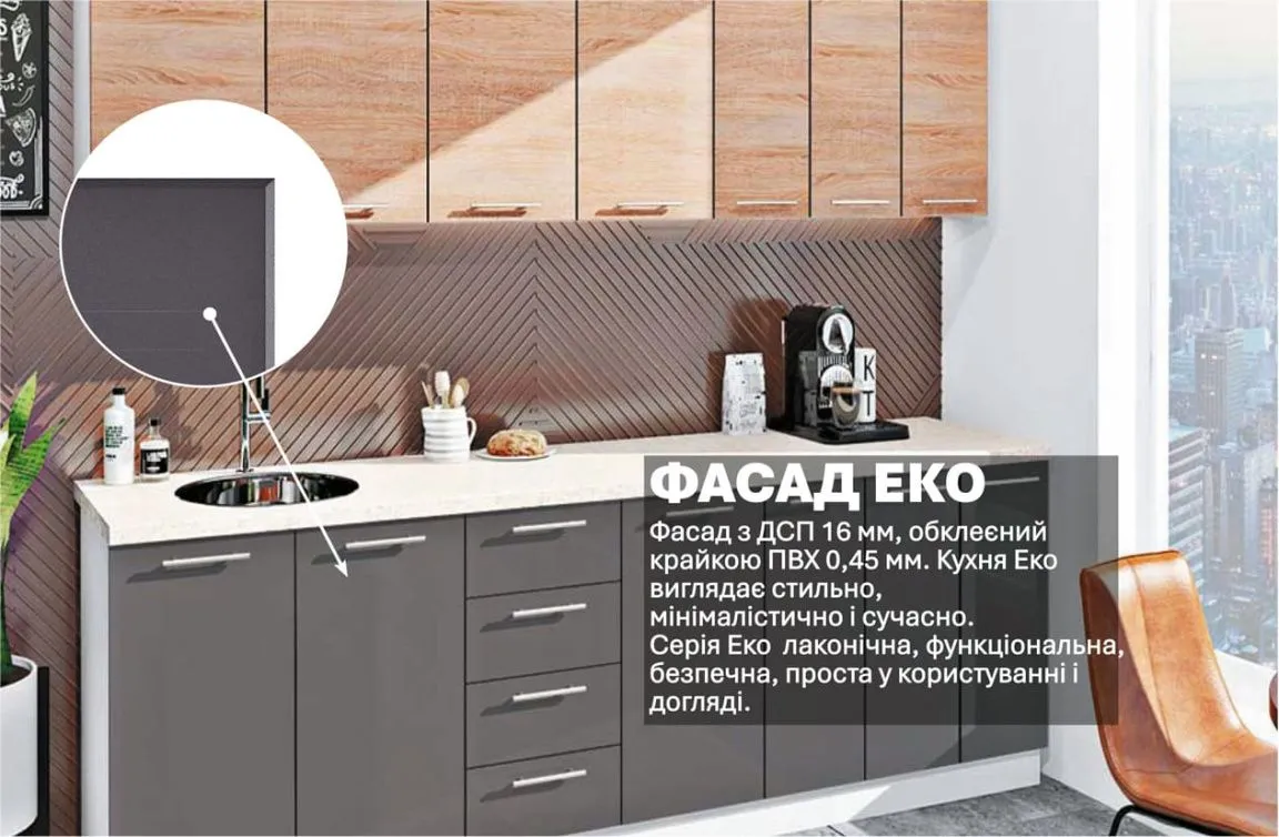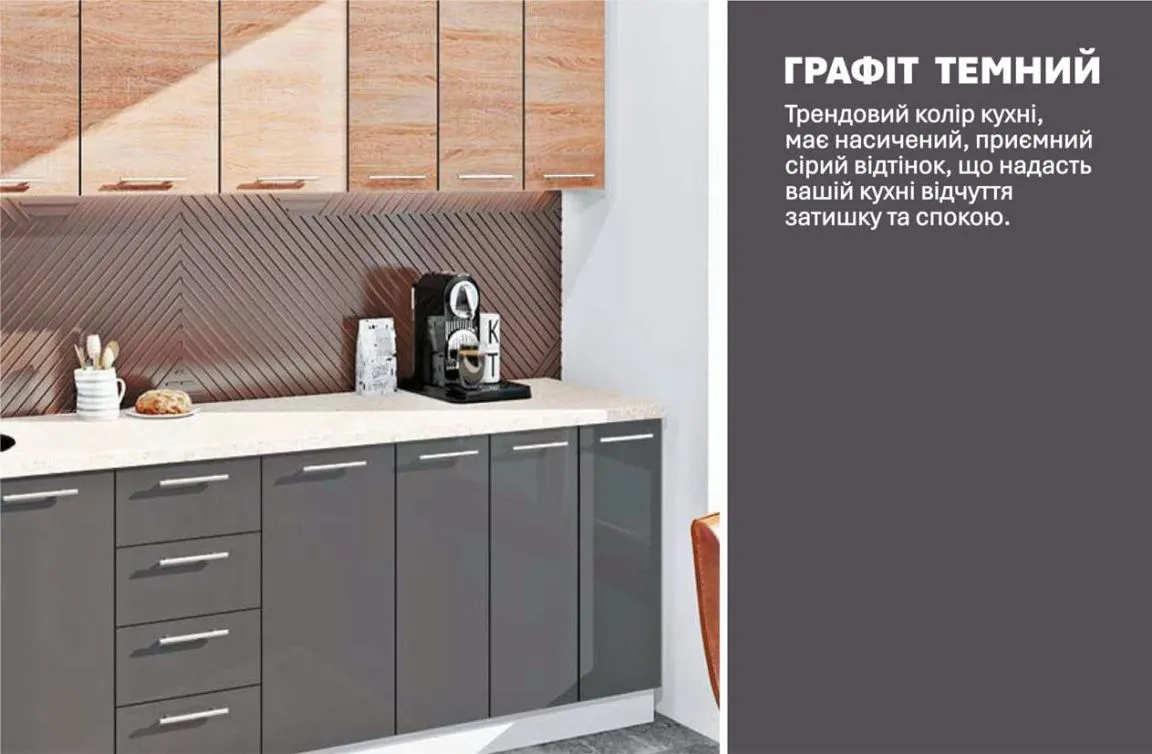 Готова кухня Комфорт Еко 250 см пряма Графіт, Дуб сонома