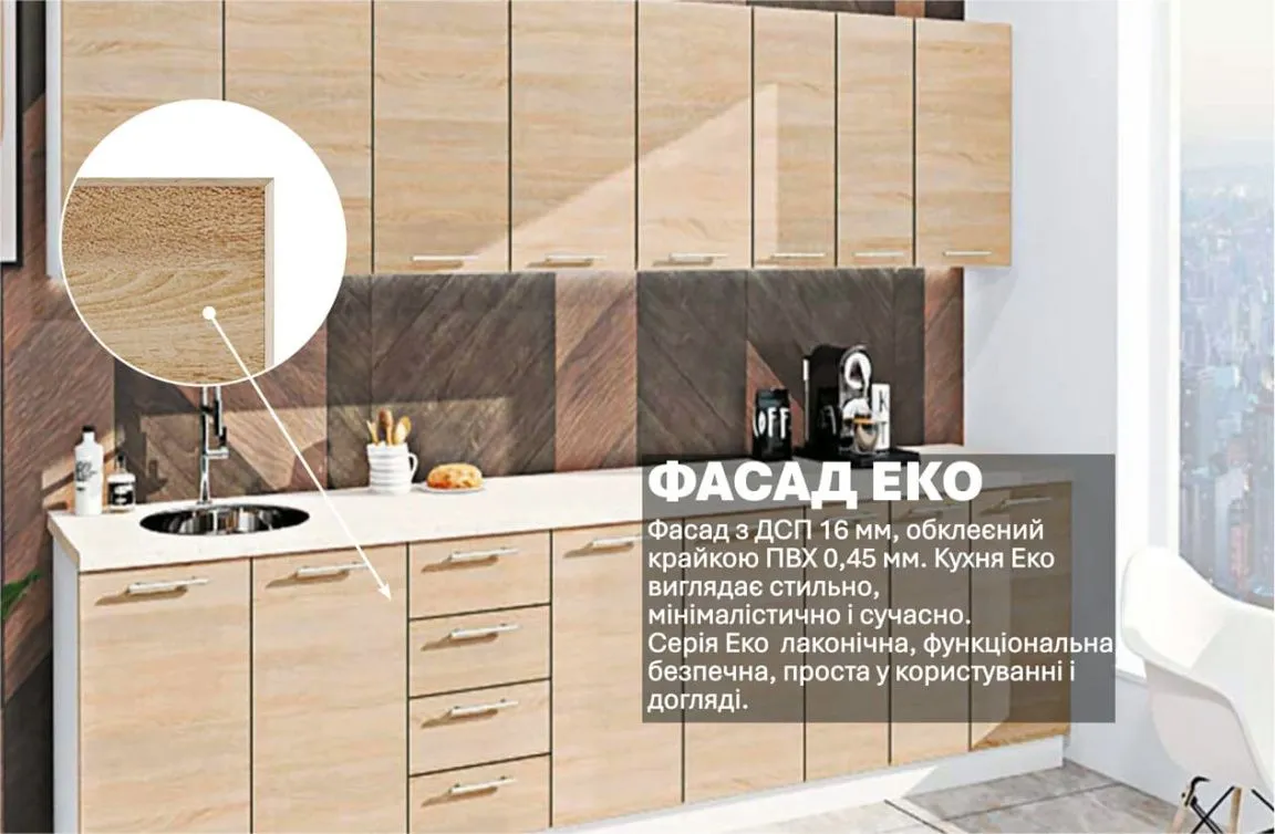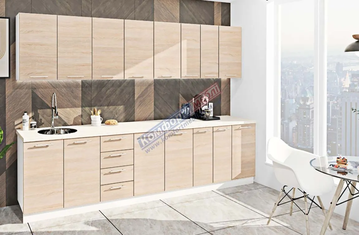 Готова кухня Комфорт Еко 3,0 метра пряма Дуб сонома
