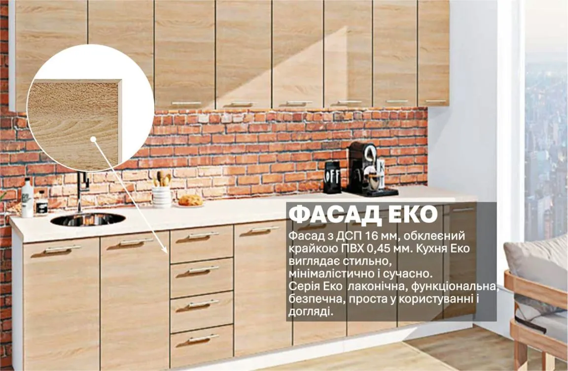 Готова кухня Комфорт Еко 3,1 м пряма Дуб натуральний