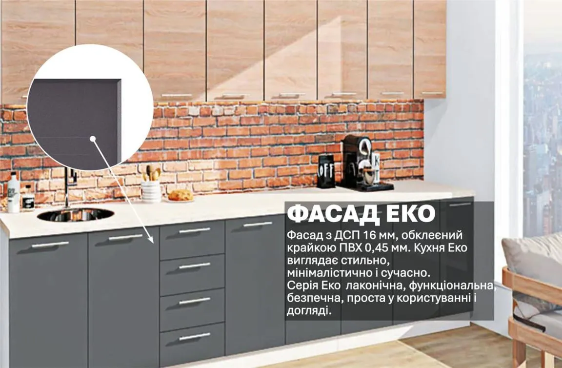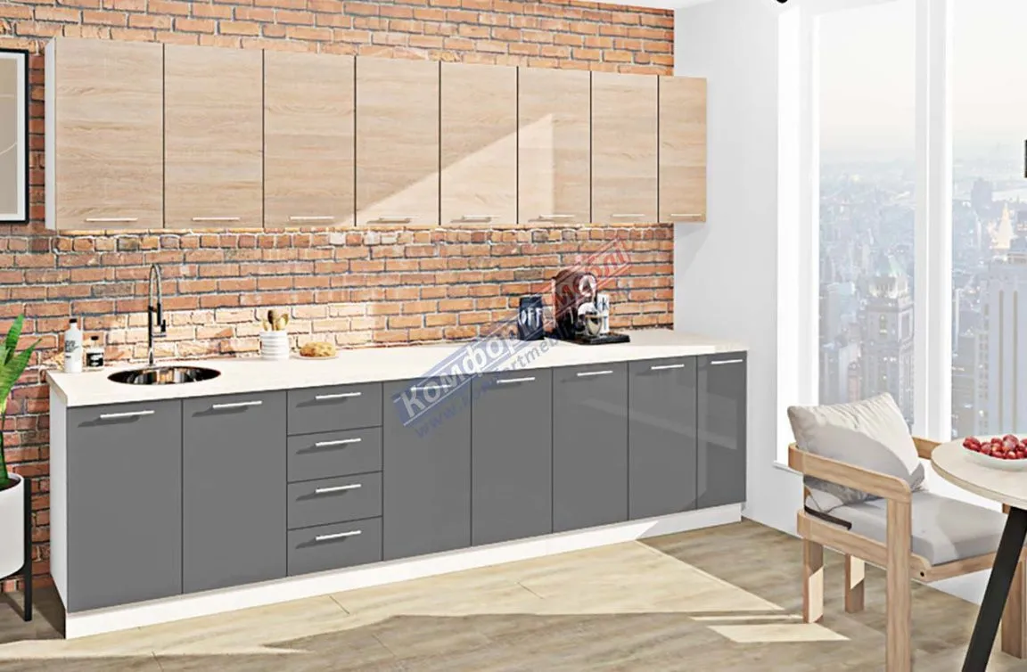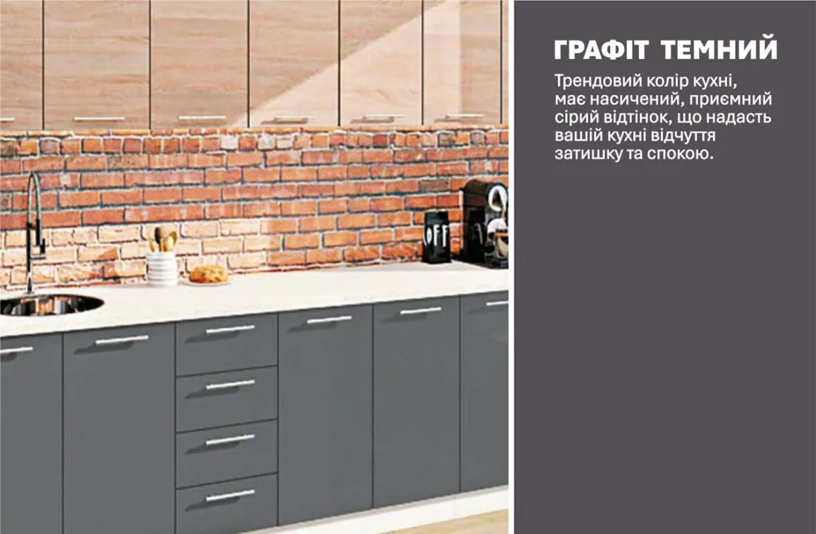 Готова кухня Комфорт Еко 3,1 метра пряма Графіт, Дуб сонома