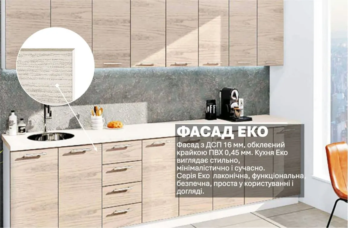 Готова кухня Комфорт Еко 3.2 метра пряма Білий дуб