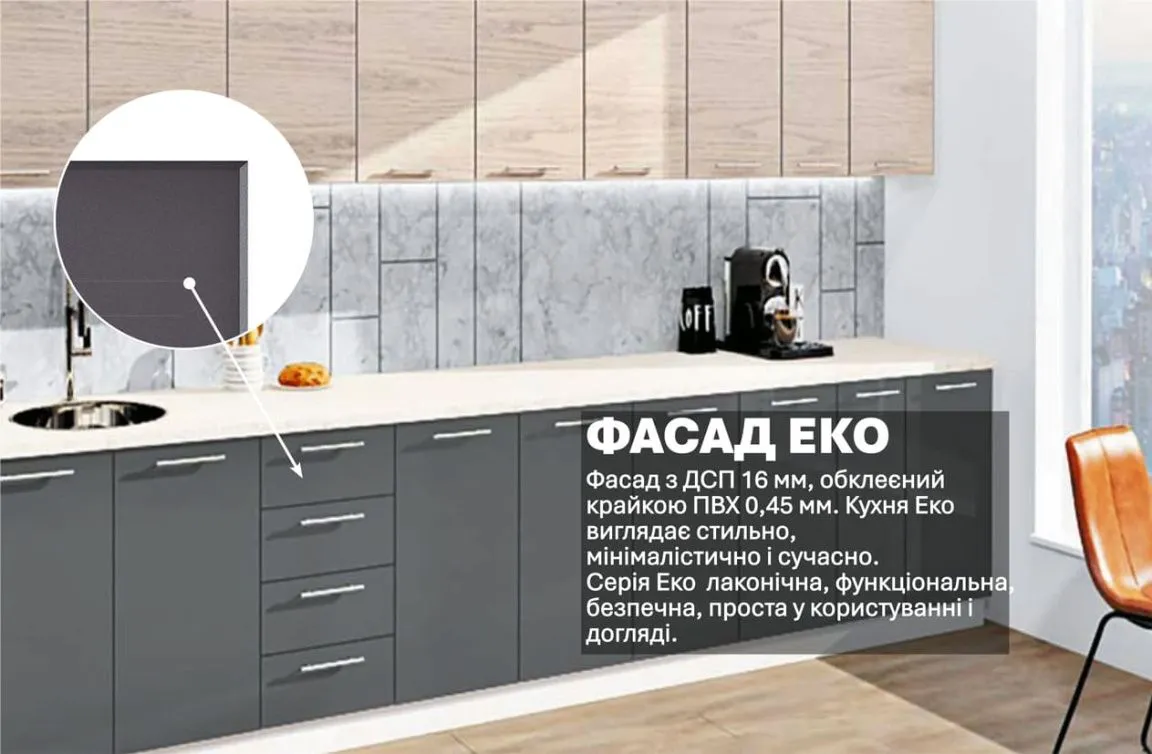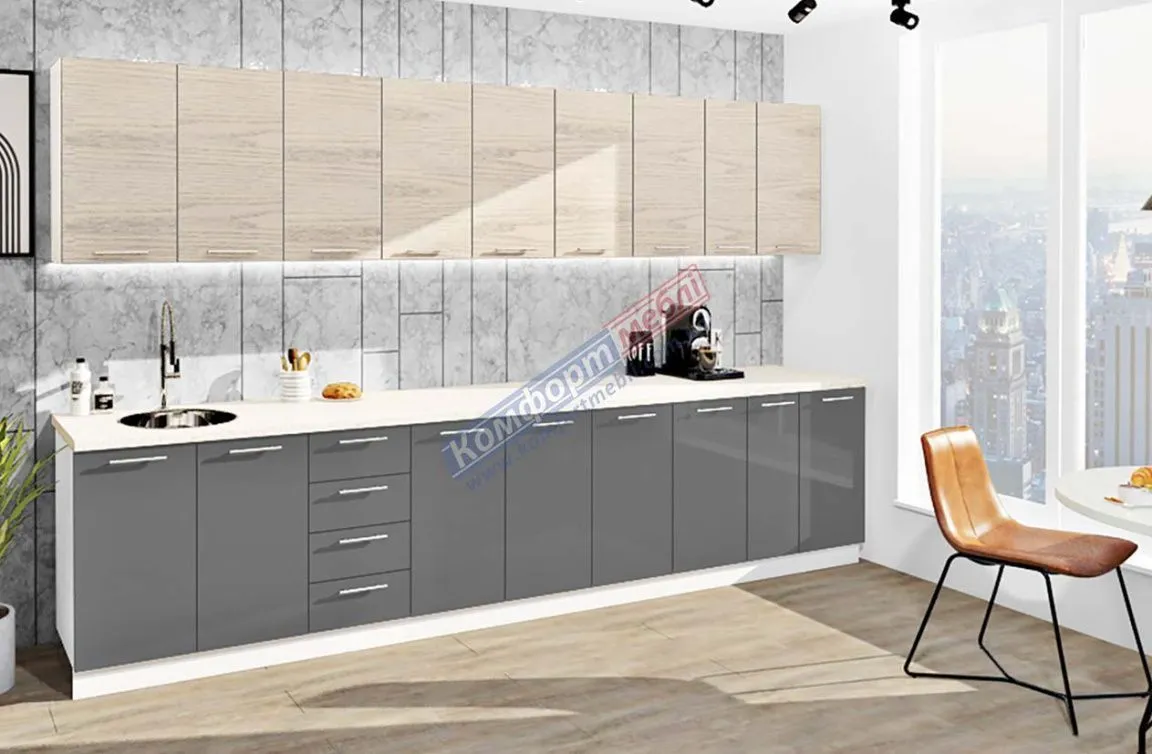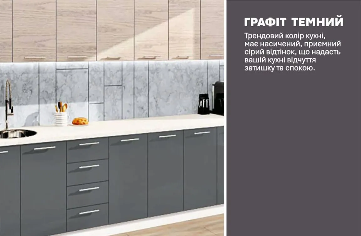 Готова кухня Комфорт Еко 3,5 метра пряма Графіт, дуб відбілений