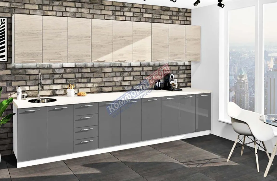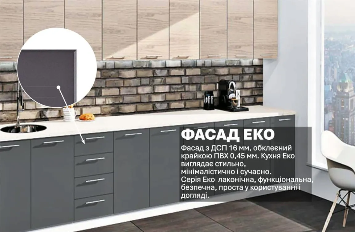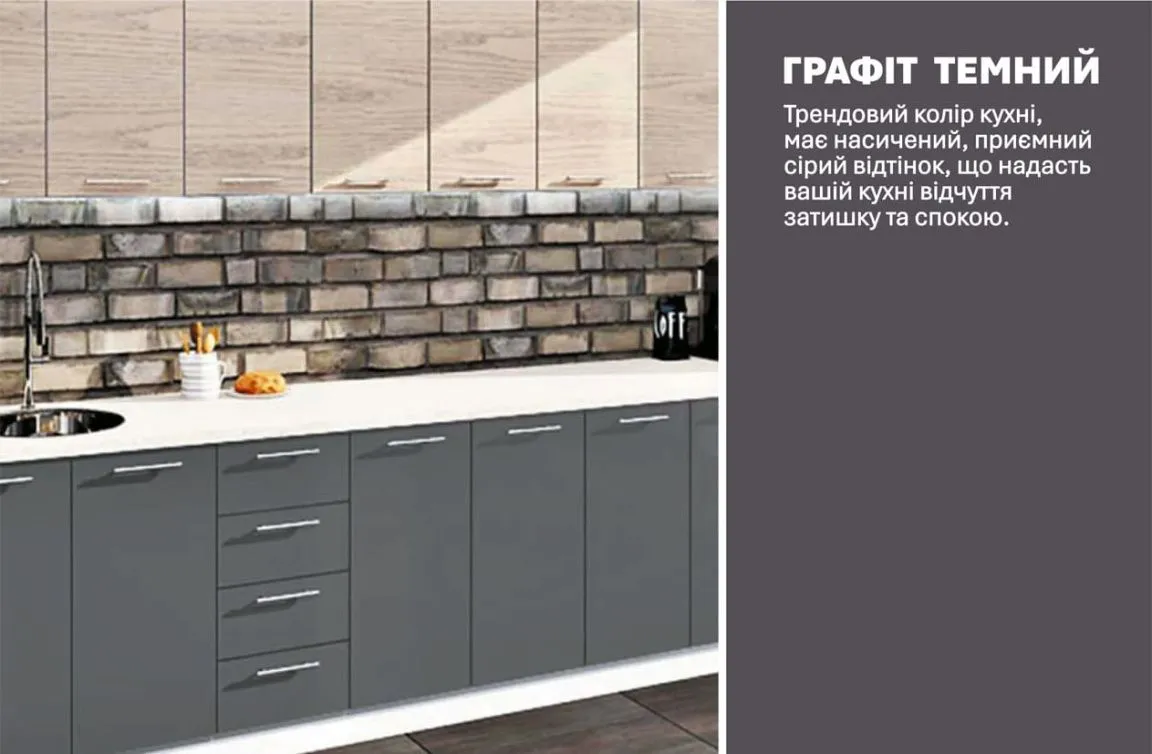 Готова кухня Комфорт Еко 3,6 метра пряма Графіт, Дуб білений