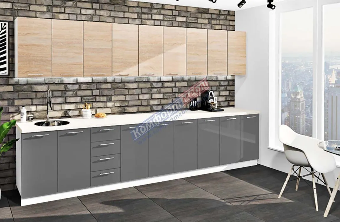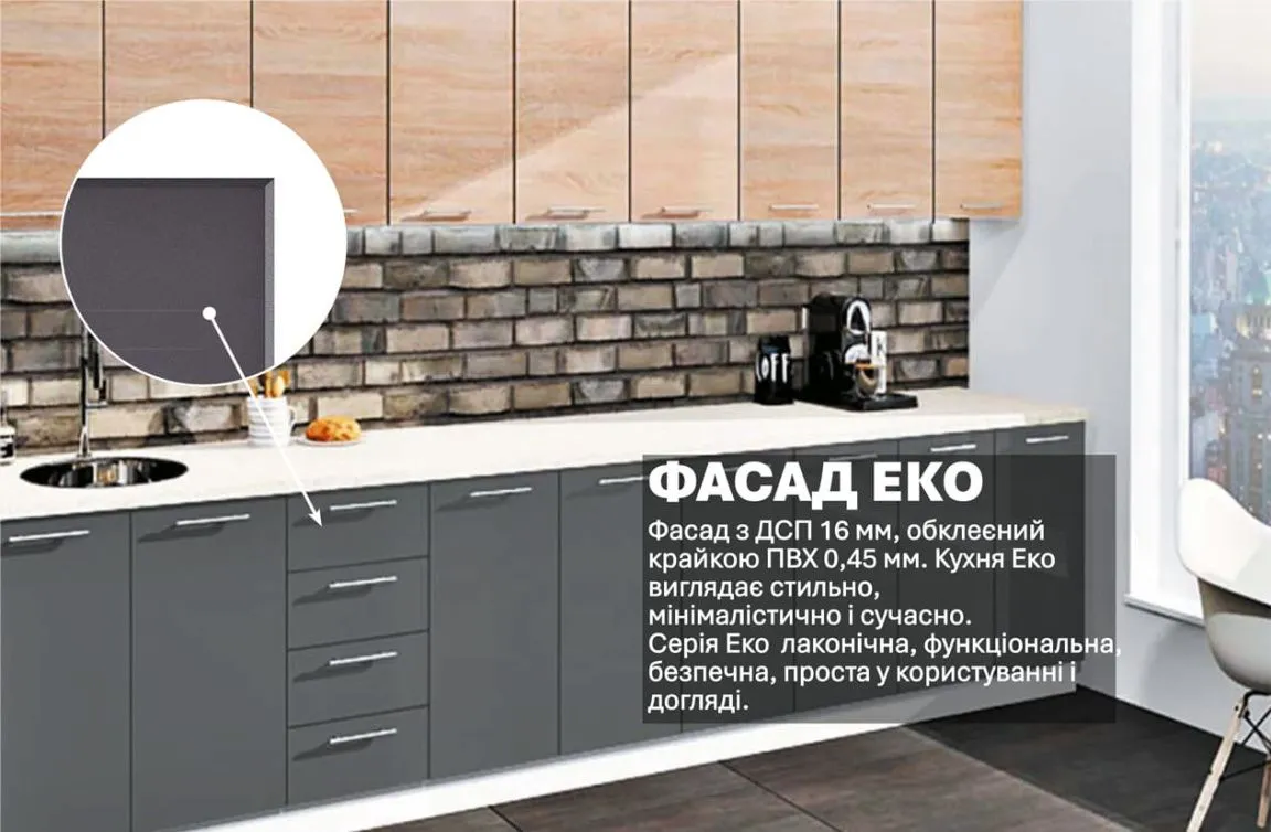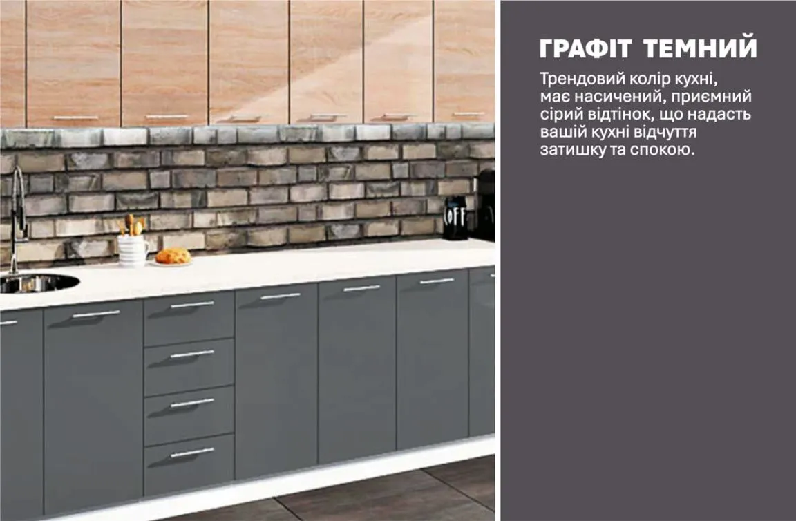 Готова кухня Комфорт Еко 3.6 метра пряма Графіт, Дуб натуральний